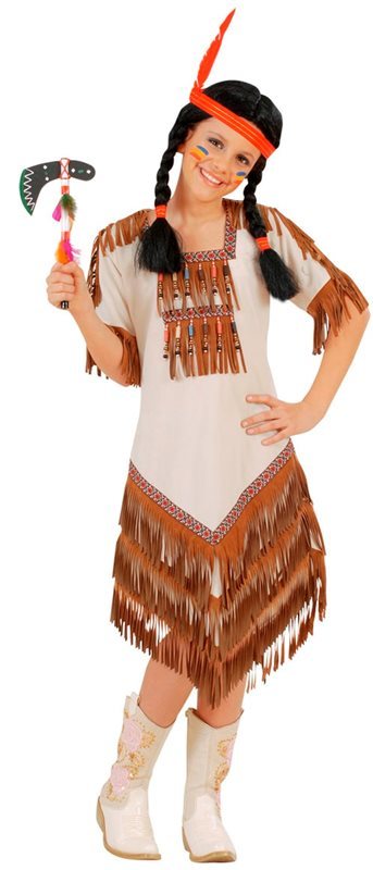 Läcker och prisvärd indianklänning med fina utsmyckningar och dragkedja bak i ryggen. Ge ditt barn den här fantastiska indiankostymen tillsammans med ansiktssmink och ett indian pannaband. Fakta om Vit Indianklänning Barn: Inkluderar en lång indianklänning med fransar och pärlor. Tillverkad i 100% polyester. Finns i storlekarna: 5-7 år som motsvarar 128 cl. 8-10 år som motsvarar 140 cl. 11-13 år som motsvarar 158 cl.